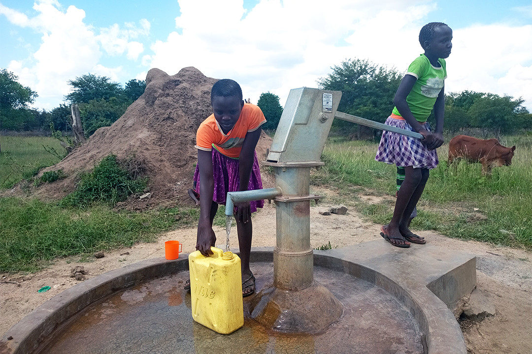 In Uganda hilft FH beim Bau von Bohrlöchern, um Wasser aus tiefen Untergrundschichten zu fördern: In der Region Amudat im Nordosten des Landes wurden vier Tiefbrunnen gebohrt, die mehr als 2.400 Menschen Zugang zu Trinkwasser verschaffen. Durch Schulungen haben wir ausserdem die Wassernutzerkomitees gestärkt, damit sie den dauerhaften Betrieb der neuen Wasserquellen sicherstellen und diese nachhaltig instand halten können.