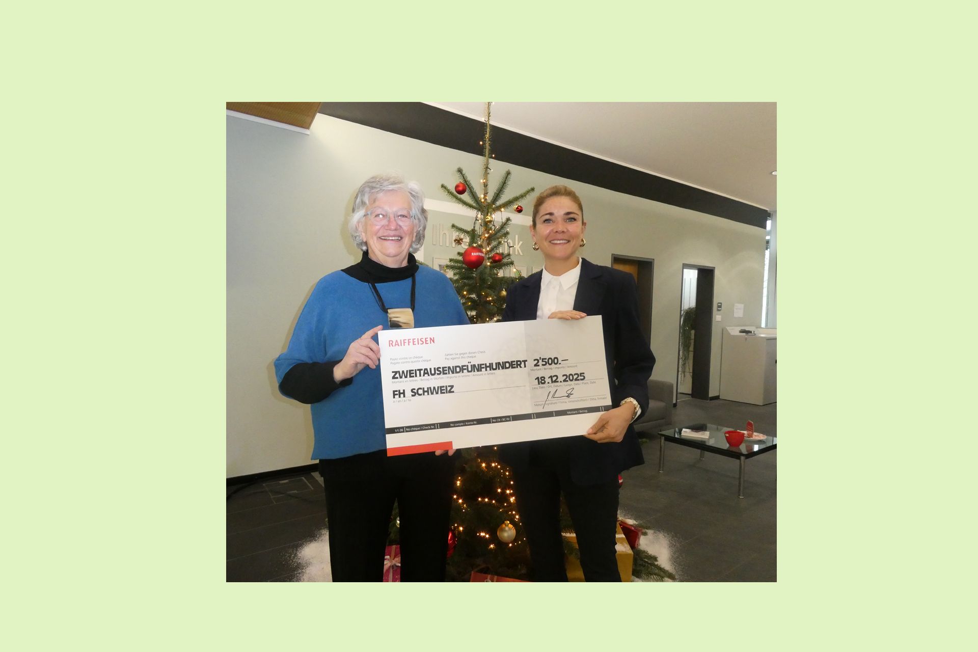Durch die Aktion konnte die Raiffeisenbank Neukirch-Romanshorn 2500 Franken an FH Schweiz spenden.